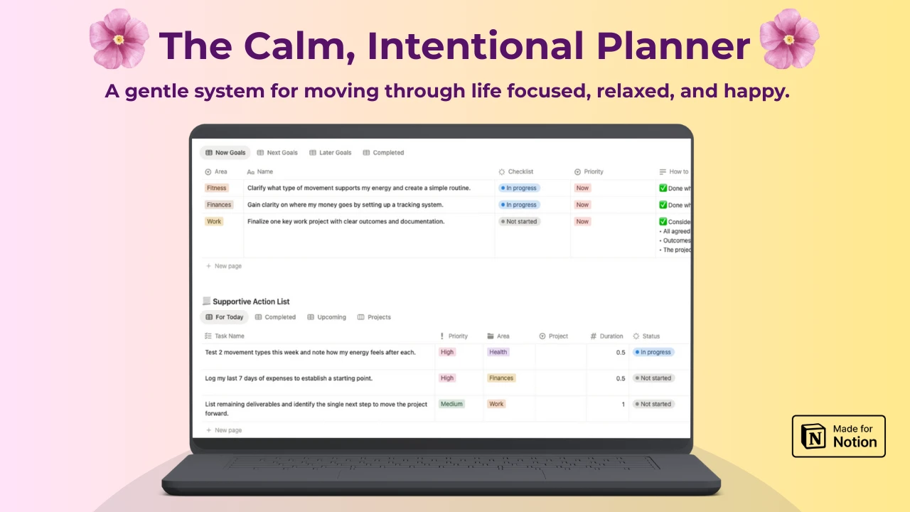 Instead of pushing users to do more, the planner helps them do what matters - calmly, consistently, and intentionally.